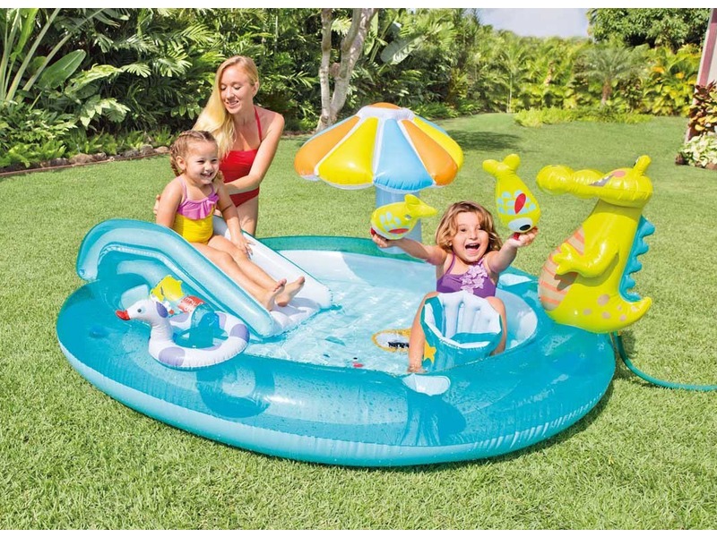 Pancsold át a forró napodat az aranyos kis medencédben! Az Aligátor játékcenter nem csak egy egyszerű felfújható gyerekmedence, hanem egy extra párnázott csúszdával, napernyővel, vödörrel és kacsával ellátott szuperszórakoztató mini strand! Mulasd hát át a nyári szünetet barátaiddal, és lubickoljatok a vízben kifáradásig. Ha pedig a sok ugra-bugrától kilyukadna, a csomagban található javítókészlettel könnyedén be tudjátok foltozni azt. Az Aligátor játékcenter méretei: 201 x 170 x 84 cm. A terméket 2 éves kortól ajánljuk.