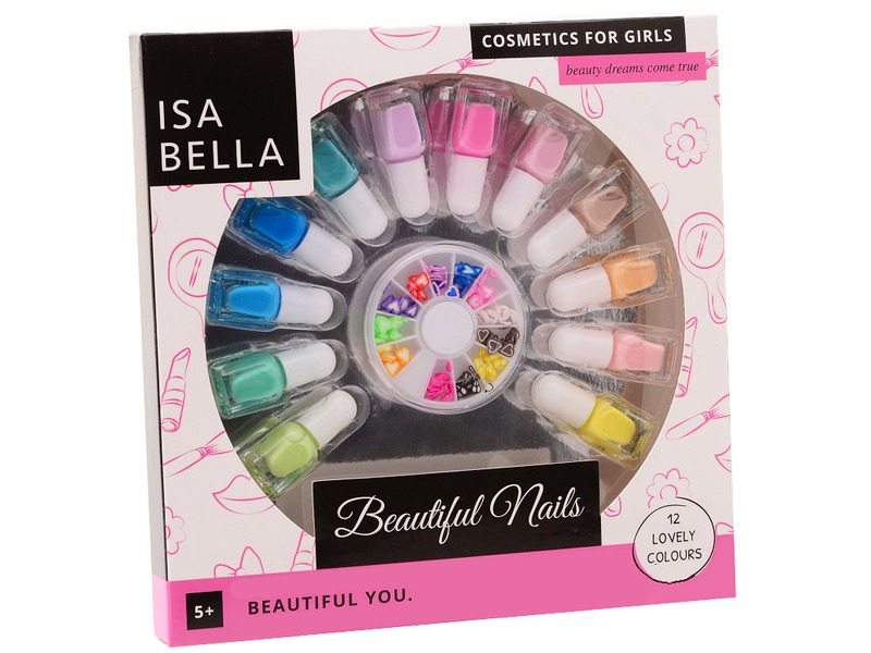 Válj a pizsi partik kedvenc vendégévé az IsaBella – köröm díszítő szett segítségével! Tanuld meg a pedikűrözés és manikűrözés fortélyait, hogy a csajos estek díszvendégeként csodálatos körömfestésekkel lephesd meg barátnőidet! Az IsaBella - köröm díszítő szett 12 darab körömlakkoz és 12 féle dekorációt tartalmaz. A készlet csomagolásának méretei: 21 x 21 x 3 cm. A terméket 5 éves kortól ajánljuk.