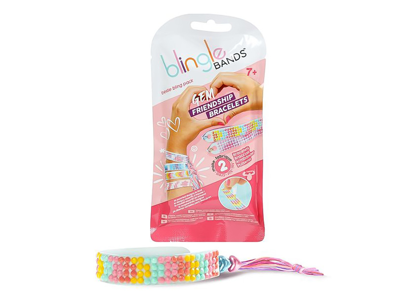 Tartozékok: 2 db Blingle karpánt, 2 db 4 kő szélességű pánt, 8 db zsinór, 2 csomag szív alakú gyöngy, 1 csomag szilikonkarika, 4 csomag Blingle ékkő, 1 db szilikonkorong, 1 db Blingle toll és fűzőtű, 1 db tálca, 4 db visszazárható ékkő tároló tasak, 1 db mintalap, használati útmutató.
