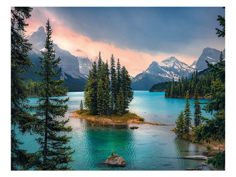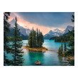 A Ravensburger 2000 db-os puzzle - Csodasziget Kanadában című képén Spirit Island látható egy apró kötött sziget ami a Maligne-tóban.