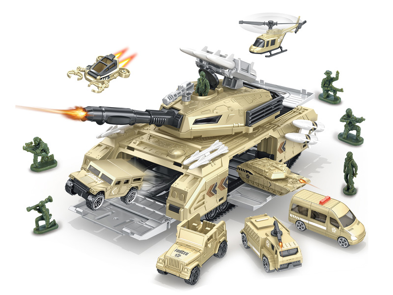 Katonai játékszett tankban (1 repülővel és 6 autóval)