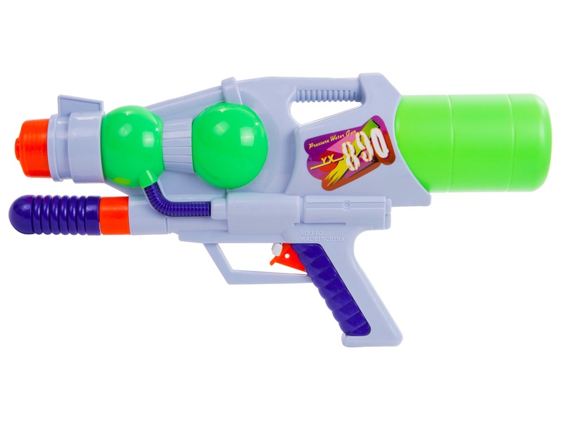 Locsold a vizet a pumpás szürke vízipisztollyal! A szürke Tartályos vízipisztoly egy műanyag vízifegyver, pumpával és nagy újratölthető tartállyal. A fegyver használatához először töltsd fel a tartályt jéghideg vízzel, majd csavard be a helyére. Ezután már csak a pumpával nyomás alá kell helyezni a tartályt, hogy jó messzire el tudj vele lőni.A szürke Tartályos vízipisztoly felüdülést hoz a forró nyári napokon, használd a strandon, vagy a kertben! A Tartályos vízipisztoly mérete: 35 cm.