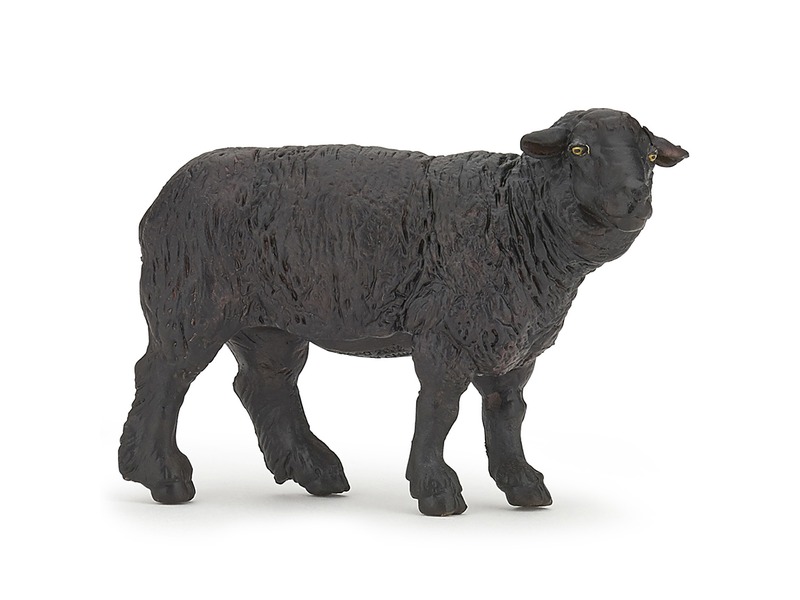 Élethű bárány figura, fekete színben! A Papo fekete bárány 51167 egy nagyon szép, sárga szemekkel készült kölyök birka figura, kedves arccal. A figura kézzel festett, precízen öntött műanyagból készült, a fekete báránnyal gazdagíthatod a farmodat, és együtt használhatod más Papo háziállat figurákkal is. A Papo fekete bárány 51167 méretei: 8 x 3 x 6 cm.
