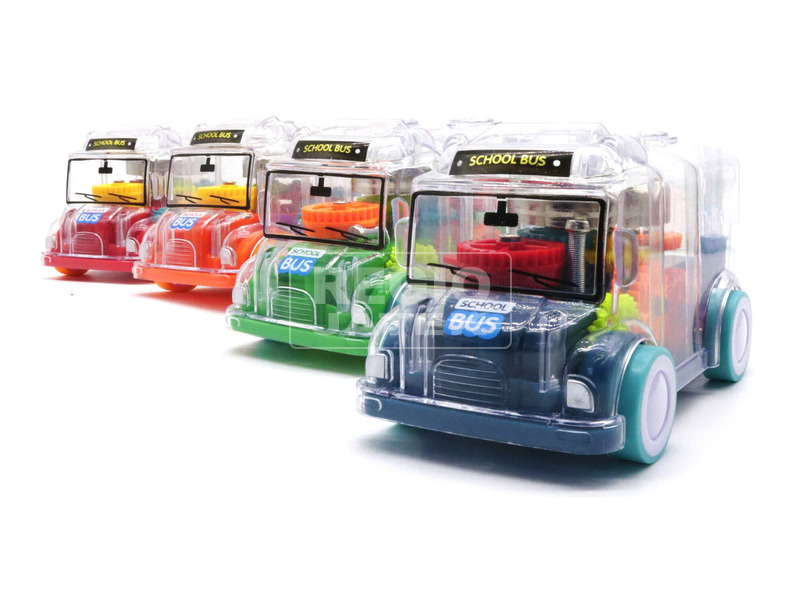 Lendkerekes busz, zenél, világít 4 féle színben: piros, narancssárga, kék és zöld színben. Kérjük hogy a megjegyzésbe tüntesse fel, hogy melyik színt kéri. A lendkerekes buszok szokásos követelményeit hozza ez a kocsi. Szilikonos kerekei szuperül tapatnak bármilyen felületen, nem karcolják fel a parkettát, de akár kint az aszfalt is hasítható vele. A versenyzésre alkalmas buszt csak ellökni kell, és gyorsan tesz meg nagy távot. Zenél, és világít is működés közben. 3 db LR44-es elemmel működik, a játék tartalmazza.