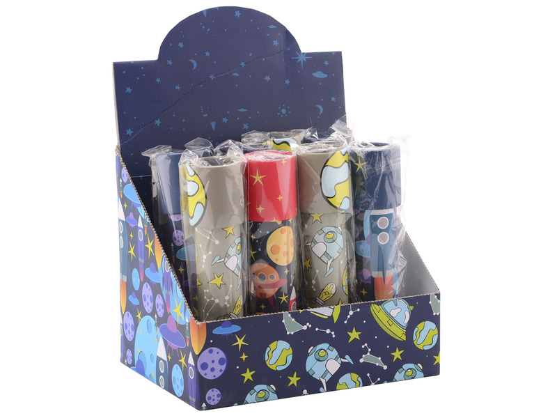 Igazi varázslatos világba repít ez a meseszép kaleidoszkóp! Izgalmas és szórakoztató felfedezéseket rejteget az apró csillogó képek változatos mozgása, a kristályok rendeződése és csodálatos látványa. A kaleidoszkóp egy réges-régi optikai játék, mely soha nem veszti el aktualitását és népszerűségét. Működése nem túl bonyolult, viszont annál látványosabb és izgalmasabb. Néhány szimmetrikusan elhelyezett tükröt helyeznek egy csőbe, mely megsokszorozza az apró kis csillogó tárgyak képét. A kép pedig a kaleidoszkóp forgatásával rengeteg módon változtatható. Ezt a megunhatatlan szórakoztató és látványos játékot már az ókori görögök is ismerték, és napjainkig sem veszített népszerűségéből. A varázslatos kaleidoszkóp figyelemre sarkallja a gyerekeket, fejleszti a koncentrációt és remek alkalmat kínál arra, hogy még többet megtudjanak a fizika alapvető törvényeiről, a fény töréséről és annak hatásairól. A játék mérete: 19 cm