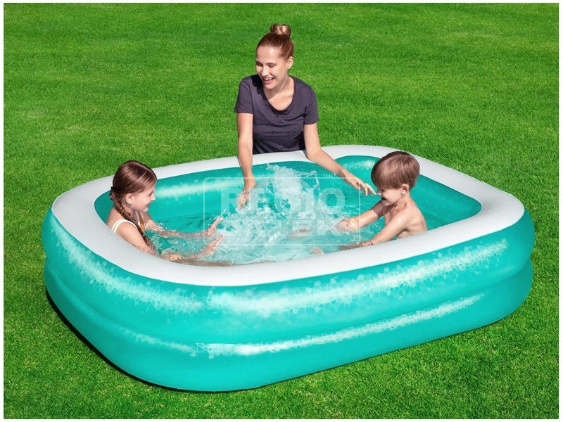 Az egész család lubickolhat a szögletes családi medencében! A Családi medence akár két felnőttnek és gyereknek is jó a pancsoláshoz a nagy melegben. A nagy medence több kamrás, biztonsági szeleppel van felszerelve, könnyen felfújható és leereszthető. A medence erős PVC-ből készült, nagyon tartós, ellenáll az időjárásnak. A készlet egy erős, öntapadó javítófoltot is tartalmaz. Felfújt méretek: 200 x 146 x 48 cm.