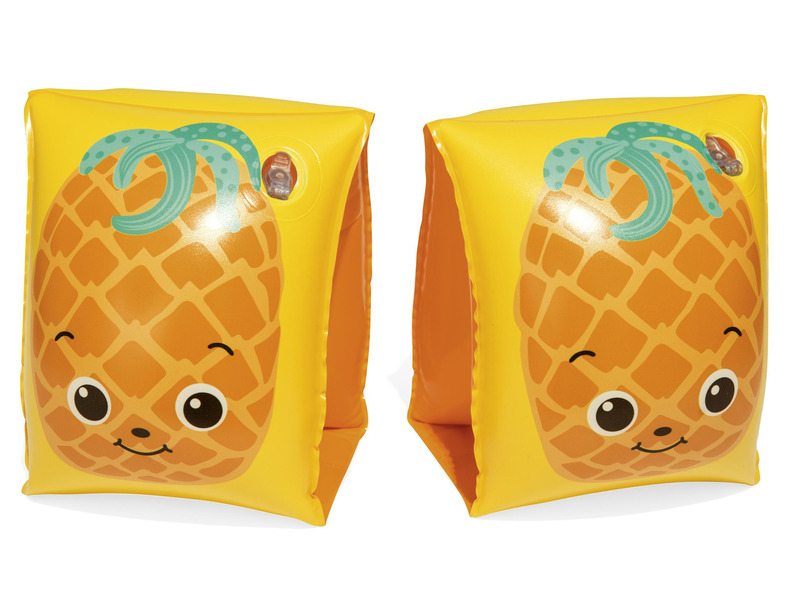 Lubickolj az aranyos ananászokkal vagy az eprekkel! A felfújható karúszók segítenek, hogy megtanuld az úszás alapjait, és ne süllyedj el a medencében. A mintás karúszó biztonsági szeleppel van felszerelve, amin keresztül egy-két fújással fel tudod tölteni levegővel.
