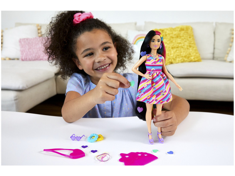Nagyon hosszú haja van (21,5 cm), amely szabadon változtatható. A készlet több mint 15 divatos kiegészítőt tartalmaz, köztük 8 színváltó csat, egy rövid lila kardigánt, egy szív alakú pénztárcát, napszemüveget és egy nyakláncot. A szituációs játékok, szerepek eljátszása a babákkal lehetőséget adhat a gyerekek számára, hogy a saját életükben zajló társas élményeket újra átgondolják, feldolgozzák, valamint megélhessék és megérthessék a szereplők szempontjait. A gyerekek imádni fogják a különféle frizurákat és a végtelen formázási lehetőségeket!