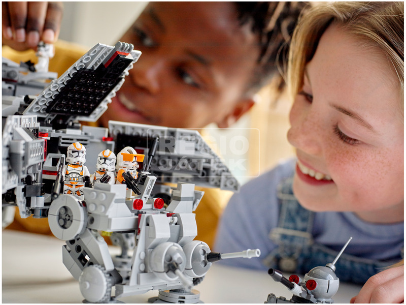 Játszd el az utapaui csatát ezzel a fantasztikus LEGO® Star Wars™ AT-TE lépegetővel (75337)! Nagyszerű ajándék a Star Wars: A Sith-ek bosszúja című film 9 éves vagy nagyobb rajongóinak. Az építőjáték beállítható lábakat, egy 360 fokban elforgatható, felemelhető nehéz lézerágyút 2 korongvetővel, egy levehető minifigura-pilótafülkét és 2 részletes kabint tartalmaz, ahol összesen akár 7 LEGO minifigura is elfér. Mindkét kabin kinyitható, ami megkönnyíti a játékot, a kinyújtható karral pedig egyszerűen felemelheted és mozgathatod az AT-TE-t. Akciódús csata A készlet 5 LEGO minifigurát tartalmaz – Cody parancsnokot, egy 212-es Klón ágyúkezelőt és 3 db 212-es Klónkatonát –, amikkel szembeszállhatsz 3 harci droid LEGO figurával és egy megépíthető törpe pókdroiddal, emellett klassz, válogatott harci eszközök is várnak rád. Az építési útmutatót megtalálod a dobozban és a LEGO Építési útmutatók alkalmazásban, ami interaktív képmegjelenítő eszközökkel fokozza a kreatív élményt.