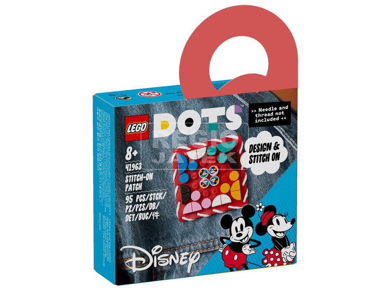Van egy 8 éves vagy nagyobb gyereked, aki szereti a kézműveskedést, a Disney szereplőket és a vagány stílust? Ezzel a merész LEGO® DOTS ? Disney Mickey egér és Minnie egér felvarró (41963) szettel minden szenvedélyének hódolhat! Ez a kreatív készlet piros, 6x6-os felvarrót, valamint sok-sok élénk színű vagy Disney Mickey és Minnie egeret ábrázoló lapocskát tartalmaz. Végtelenül újratervezhető szórakozás. A könnyű, intuitív, önálló játékfolyamatban a gyerekek megtervezhetik saját felvarrójukat a színes lapocskákkal, teljesen magukra szabhatják, és kifejezhetik szenvedélyüket a mókás, Mickey és Minnie egér mintás lapocskákkal, majd felrakhatják a ruhájukra (a tű és cérna nem tartozék), és már mehetnek is. Játssz kedved szerint! A DOTS készletek bevezetik a gyerekeket a LEGO játék és kreativitás nyújtotta vidámságba, miközben megalkotják és feldíszítik a különféle készleteket.