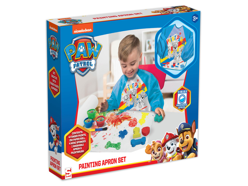 Festőszett köténnyel fiúknak - Mancs őrjárat Paw Patrol festőkészlet, mosható festőköténnyel. Négy különböző színű ujjfesték és egy papírtekercs található benne. Szeretsz festeni? Ez lesz a kedvenc festőkészleted. A készlet tartalmaz egy ecsetet és szivacsokat. 3 éves kortól ajánlott