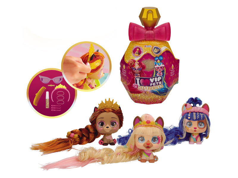 Itt jönnek a valaha volt legelbűvölőbb VIP Pets-ek, a CELEBRIPETS kisállat figurák! A legdivatosabb házi kedvencek gyönyörű hajjal, és most már igazi hírességeknek tűnnek. Exkluzív, arany színű samponos flakonban kaphatók, amely elrejti ezeket az ultrahíres karaktereket. Töltsd fel a sampon adagolót és lassan leplezd le, melyik VIP Celebripets rejtőzik benne!