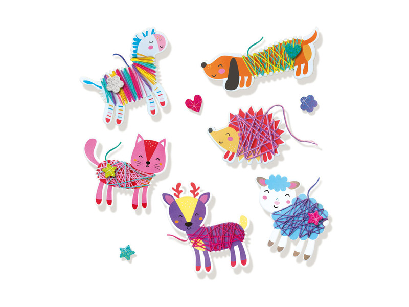 Brr… hideg van! Ezek az állatok fáznak. Adja meg nekik a kabátjukat az öt színű cérnával. Csomagolja be a juhokat extra gyapjúba, és adjon a sündisznónak fényes bundát. Amikor az állatok egy kicsit felmelegedtek, díszítheti őket a csillogó matricákkal. A csomag tartalma: 6 állatos forma, 5 különböző színű cérna, matricák, használati utasítás.