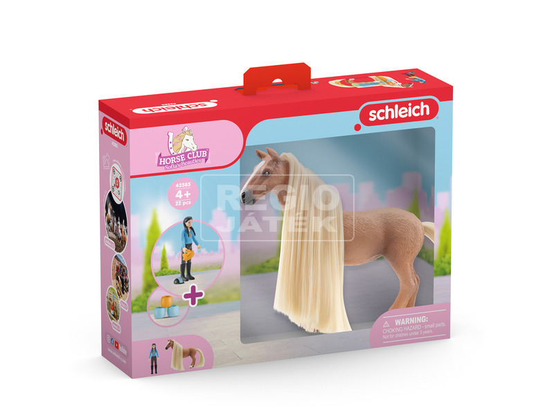 A Schleich Horse Club különleges újdonsággal kedveskedik a rajongóinak. A Kim és Caramelo kezdő készletben egy fésülhető sörényű világosbarna ló és egy lovas lány is megtalálható. A gyerekek eljátszhatják és megtanulhatják, hogyan kell gondozni egy lovat. Sörényébe és hosszú lófarkába csatokat és díszeket tehetnek, felkészíthetik a díszes nyeregtakaróval egy bemutatóra. A lovas végtagjai mozgathatóak, így ráültethető a lóra, valamint az elengedhetetlen kobakot is a fejére lehet tenni.