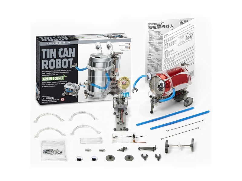 Ügyes kis robot, amit egy üdítős dobozból össze tudsz rakni! A 4M üdítősdoboz robot készlet az újrahasznosításon alapul. Fogj egy üres üdítős dobozt, tedd rá a motort és az elemtartót, erősítsd rá a merevítőket! Ezek után már csak karokkal és szemekkel kell ellátnod, hogy kész legyen a kis figura, ami fel-alá rohangál! A 4M üdítősdoboz robot kezébe kisebb tárgyakat tudsz tenni, amiket jókedvűen szállít neked. A robotot fekve és állítva is tudod használni, attól függően, épp hogy szeretnéd látni a kis lényt. A 4M üdítősdoboz robot készlet 1 db AA ceruzaelemmel működik, a csomagolás az elemet nem tartalmazza.