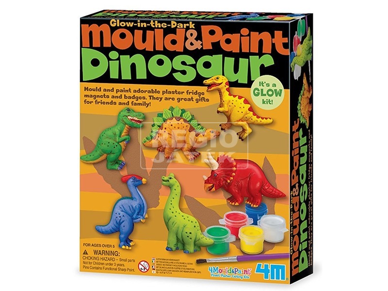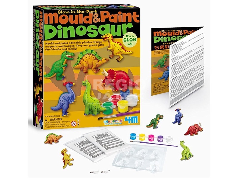 Önts ki gipszből és fess ki csodás hűtőmágnes és kitűző dínókat! A 4M dinoszaurusz gipszkiöntő készlettel kiváló ajándékokat készíthetsz családodnak, barátaidnak! A csomagban lévő öntőformákba tedd be a gipszet, simítsd le a felesleget, és hagyd megkötni. Miután megszáradt a modellgipsz, ki tudod festeni a dínókat, illetve még foszforeszkáló festékkel is ki tudod emelni a testrészeiket! A 4M dinoszaurusz gipszkiöntő készlet tartalmaz még mágneses lapokat és kapcsokat, amikkel hűtőmágnest, kitűzőt tudsz készíteni.