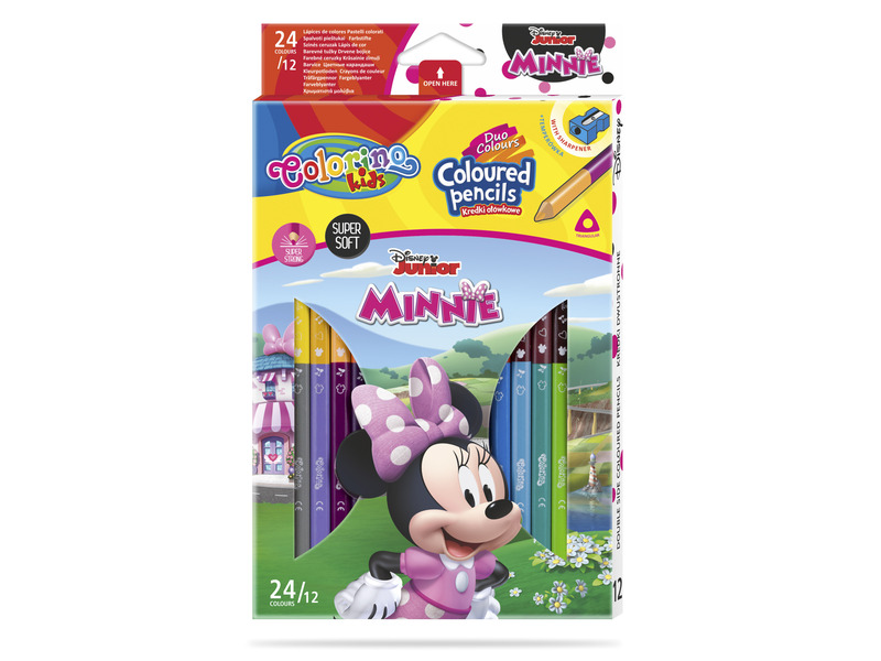 Colorino Kétoldalú háromszög alakú színes ceruza Minnie 12db Kiváló minőségének köszönhetően nagyon szép rajzokat lehet készíteni ezzel a 12 darabos ceruza készlettel. Kétoldalú ceruza, így nem 12 szín hanem 24 szín áll a gyermek rendelkezésére. Háromszögletű ceruzatestének köszönhetően a gyermek kényelmesen tudja megfogni a ceruzát. Extrapuha, így könnyen hegyezhető, és nem törik a ceruza. 3 éves kortól ajánlott