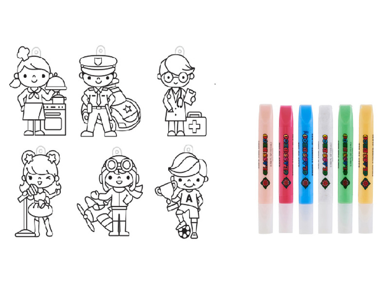 Üvegmatricafesték +6 db sc.foglalkozások Az Amos üvegfesték készletének segítségével most megismerkedhetsz a foglalkozásokkal! Csak fogd a műanyag képeket és máris alkothatsz a színes festékekkel! Amos üvegmatricafesték készlet foglalkozások témában, kifesthető képekkel és üvegfestékekkel! A csomag tartalma: