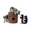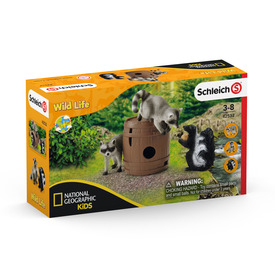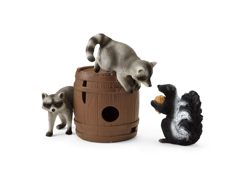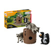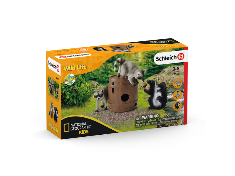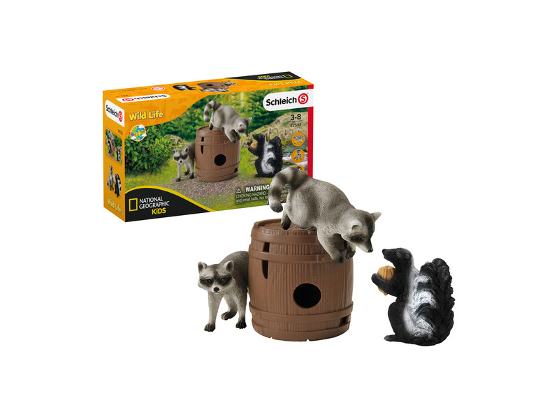 A német Schleich játékgyártó változatos tematikus világaival, élethűen és részletesen kidolgozott figuráival nemcsak a gyerekek fantáziáját mozgatja meg és kreativitását ösztönzi, de segíti fejlődésüket is. Céljuk, hogy izgalmas és nevelési szempontból is értékes játékkoncepciókat biztosítsanak a gyerekeknek, korosztálytól és érdeklődési körtől függetlenül. Filozófiájuk: játssz, érezz, tapasztalj! A Schleich figurák mindegyike kiváló minőségű, részletgazdag és egyedi készítésű, melyeket nagy odaadással, kézzel festenek meg. Az élethű kivitelezésű Schleich állatfigurák segítségével a gyerekek megtanulhatják, hogyan néznek ki az állatok és élőhelyeik a valóságban, és hogyan bánhatnak az emberek felelősen a természettel. A Schleich Wild Life figuráival és készleteivel vad kalandokat élhetsz át! Utazz át Észak-Európa erdein, menj szafarira a szavannákon, ismerd meg a trópusi dzsungelek vagy épp a sarkkörök vadállatait! Segíts Tom vadőrnek és Mary állatorvosnak a kutatóállomáson és a nyílt terepen egyaránt! A kis borz talált egy igen kedvére való diót és úgy gondolta, elrejti egy fahordóban. De amint elfordult, két pimasz mosómedve máris meg akarta szerezni tőle. Az egyik mosómaci bemászik a hordóba és már szaladna is el vele, de a borz útját állja. Vajon sikerül visszaszereznie a finomságot? A játékszett tartalma: 2 mosómedve figura, 1 borz figura, 1 hordó, 1 dió Doboz mérete: 19 x 11,5 x 5,5 cm.
