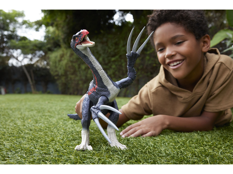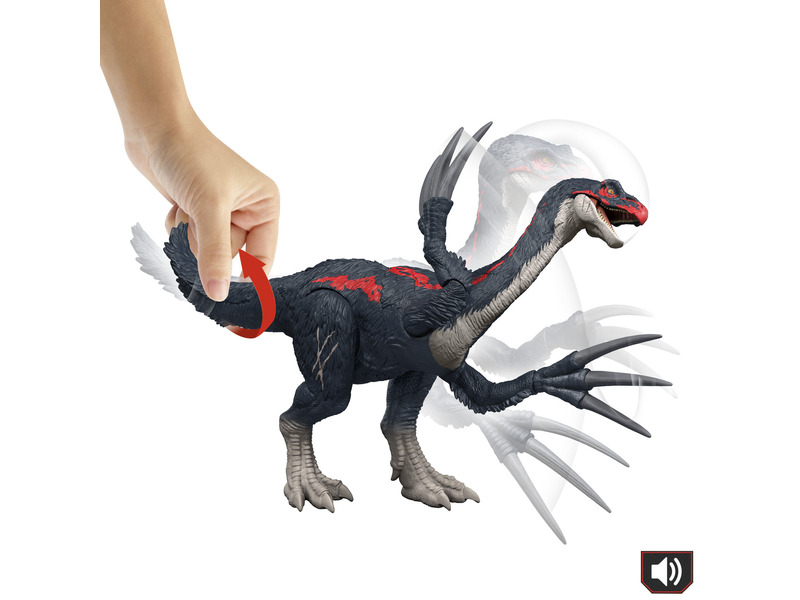 A lény részletesen kidolgozott, élethű külsője, rémisztő hangja és pusztító oldalirányú csapásai lehetővé teszik, hogy a gyerekek igazán átélhessék a Jurassic World izgalmait.