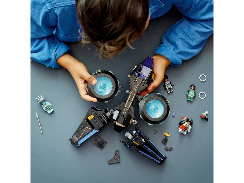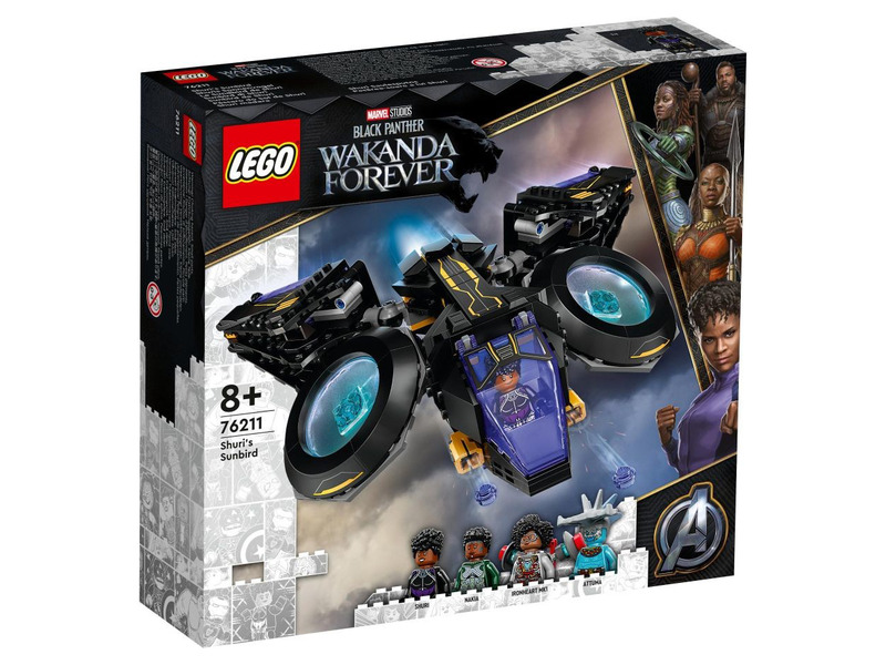A LEGO® Marvel Shuri madara (76211) készlet annyira bámulatosan mutat, amennyire a gyerekek imádni fognak játszani vele. Lepd meg ezzel a repülővel a Fekete Párduc 8 éves vagy nagyobb rajongóit, és nézd meg, ahogy a képzeletük szárnyra kap! Játékhoz és kiállításhoz egyaránt nagyszerű Ez a bámulatos repülő a Sunbird autentikus másolata, azaz a fantasztikus repülőgépé, aminek Shuri a pilótája a Fekete Párduc: Vakanda, légy áldott! című Marvel Studios filmben. A szuperhőskellék sokoldalú és nagy teljesítményű darabja 2 nagy, gömbcsuklós motorral van felszerelve, amit a gyerekek számos szögben megbillenthetnek és elforgathatnak. A csuklópántoknak köszönhetően a szárnyakat előre és hátra lehet hajtani. A hátulján egy tárolóhelyet találsz Shuri vasökleinek, az elejére pedig 2 korongvető van felszerelve. A készlet 4 minifigurát tartalmaz – Shurit, Vasszivet, Nakiát és Attumát –, akik klassz harci eszközökkel és kiegészítőkkel vannak ellátva.