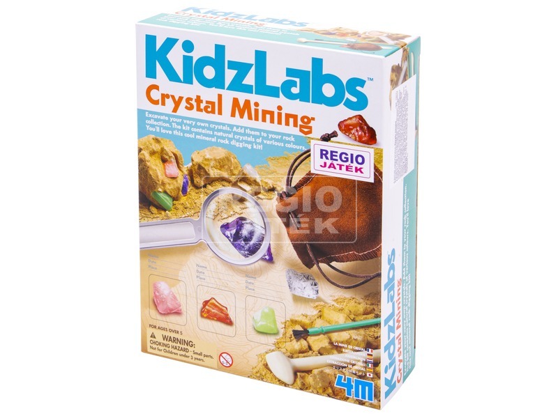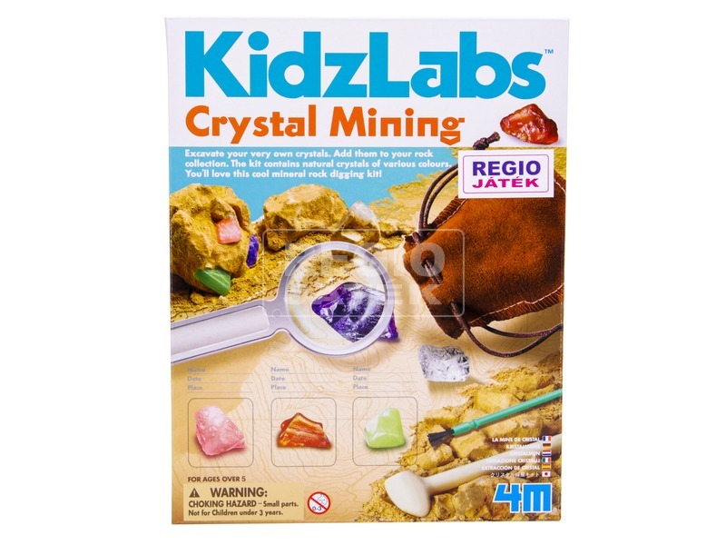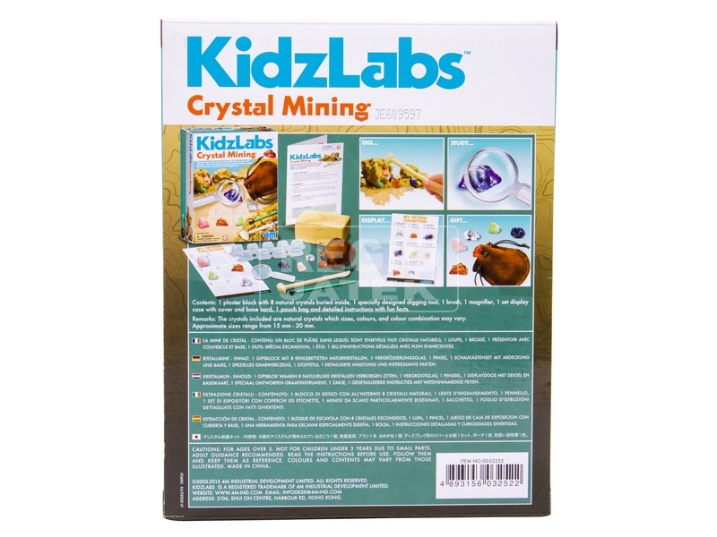 Ásd ki a kristályokat a mélyből, és add hozzá a gyűjteményedhez! A 4M kristály bányász készletben mindent megtalálsz, ami kell egy kezdő geológusnak kell! A gipsztömb mélyén kristályok lapulnak, ezeket kell szépen elővarázsolni. Ehhez kéznél lesz kőzetkalapács, amivel kopogtatva és kaparva le tudod bontani a gipszet. Ha már látod a kristályokat, akkor érdemes óvatosabban, az ecsettel dolgoznod, nehogy megsérüljenek a kristályok. Ha előbukkantak, akkor a nagyítóval és a gyűjtőkártyával be tudod őket azonosítani, hogy melyik kristály micsoda.