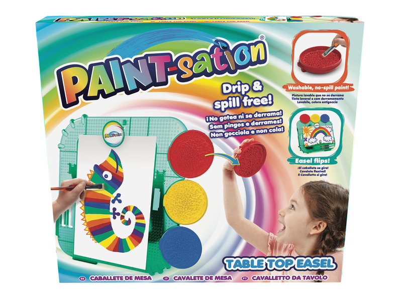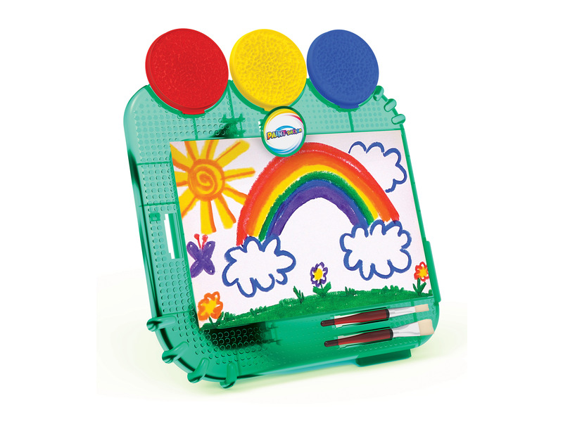 PAINT sation asztali festőállomás A 3 darab festékszivaccsal egyszerű, víz- és cseppmentes a festés, így nem kell félni attól, hogy minden maszatos lesz. Az állványon a papír könnyedén cserélhető, így a gyerekek egyedül is bele tudnak kezdeni új alkotások készítésébe. Használat előtt, valamint a színek váltása között érdemes az ecsetet vízben leöblíteni és megszárítani. Nem szabad vizet adni a festékekhez, mert állaguk folyós lesz. Használaton kívül fedelét szükséges visszahelyezni a palettákra, a kiszáradás elkerülése érdekében. A festés során szárnyra kap a képzelet, a kísérletezőkedv, fejlődik a szépérzék, a finommotorikus készség, a szem-kéz koordináció és a koncentráció. Tartalom: festőállomás, 3x27g festék, 2 db ecset, 10 db papír. Csomagolás méretei: 35 x 6 x 38 cm