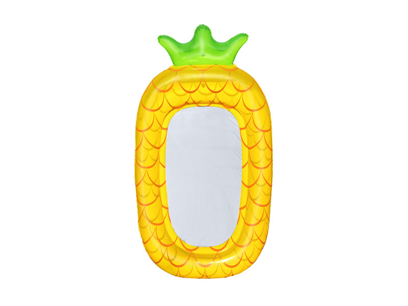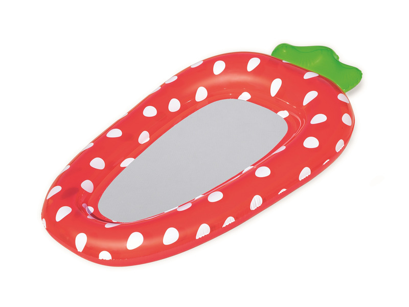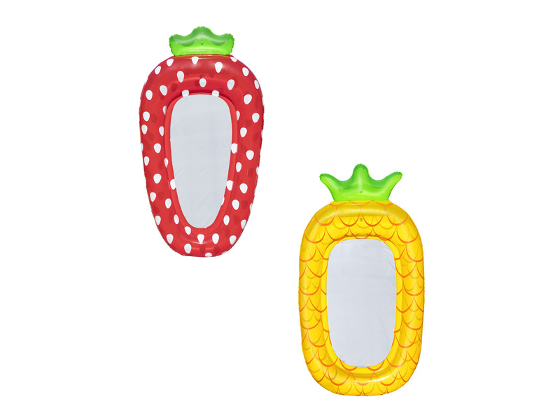 Eper és ananász mintás matrac Kétféle változatban. Kérjük hogy a megjegyzésbe tüntesse fel, hogy melyik változatot kéri. Ananász: Az egyik legnépszerűbb úszásszer, amelyre minden vízkedvelőnek szüksége van a matrac. Nekik köszönhetően gyermeke anélkül feküdhet a napon, hogy elhagyná a vizet. Egy érdekes minta minden bizonnyal sok ember figyelmét felkelti. A matrac alja hálós, szélei felfújhatóak. Sérülésálló PVC anyagból készült, amely biztosítja a termék hosszú élettartamát. Műszaki adatok:
