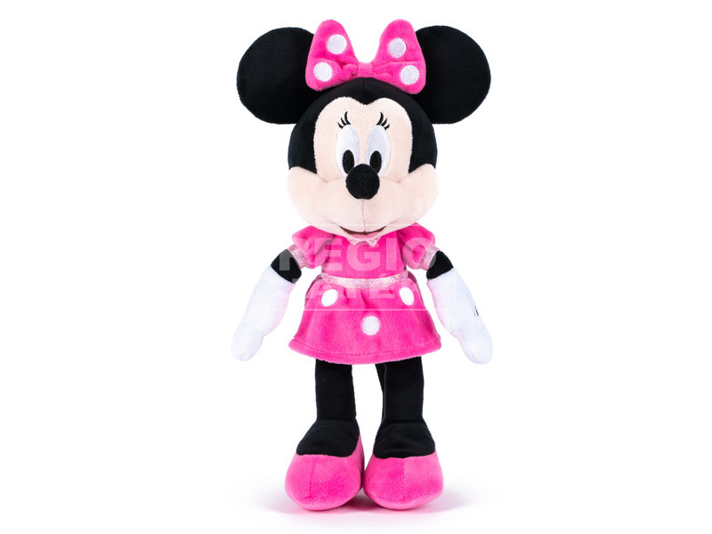 Játssz Walt Disney legismertebb lányfigurájával, Minnie egérrel! A Minnie egér Disney plüssfigura pöttyös ruhában egy nagyon puha, selymes plüssből készült figura, puha töltéssel. Minnie egér rózsaszín, pöttyös ruhát és rózsaszín cipőt hord, a feje búbját egy rózsaszín masni díszíti. Méret: 25 cm.