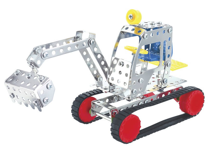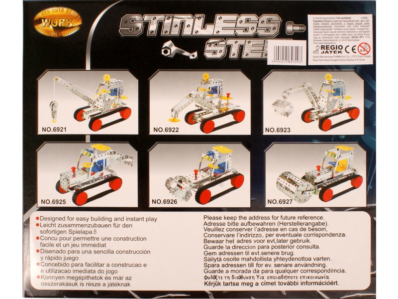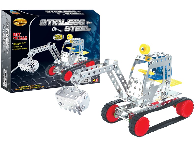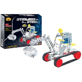 Rakd össze a legmenőbb markológépet a Lánctalpas markoló 193 darabos fém építőjátékkal! A Lánctalpas markoló 193 darabos fém építőjáték sok lyukacsos, rozsdamentes fémdarabot, csavart, anyát, műanyag kiegészítőt és szerszámot tartalmaz amikből össze tudod állítani a markológépet. Ha kész az alap, szereld fel rá a markoló kanalat és a fülkét, végül pedig fűzd fel a lánctalpakat a kerekekre. A Lánctalpas markoló 193 darabos fém építőjáték fejleszti a kézügyességet és a szerelési készséget is. Csomagolás méretei: 29 x 4 x 25 cm.
