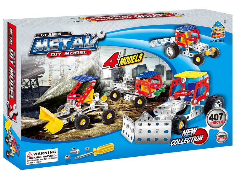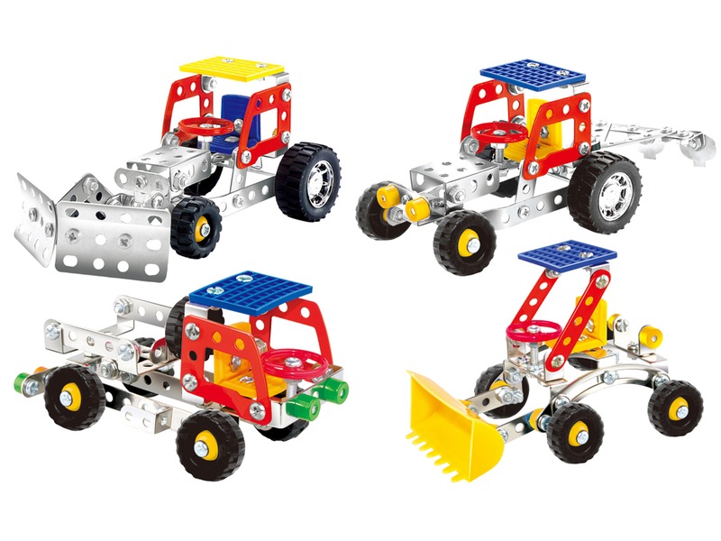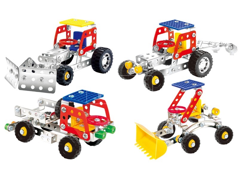 Rakj össze menő munkagépeket fém építőelemekből! A Munkagép 4 az 1-ben 407 darabos fém építőjáték rengeteg fém alkatrészt, műanyag kereket és kiegészítőt tartalmaz, amikből többféle traktort, és egy teherautót is össze tudsz rakni. Ragadd meg a szerszámokat, a csavarhúzót és a villáskulcsot, állítsd össze az alkatrészeket, miközben barkácsolsz, fejlődik a műszaki érzéked és a kézügyességed is! A Munkagép 4 az 1-ben 407 darabos fém építőjáték kicsiket, nagyokat is bevezet az építés és barkácsolás világába!