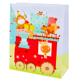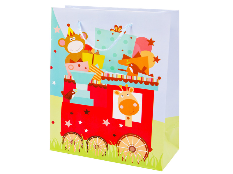 Ajándékot kapni és ajándékot adni is csoda jó dolog, legyen szó bármilyen ünnepről. Szülinap, karácsony, névnap vagy egy sikeres feladat teljesítése, számos alkalom adódik, amikor ajándékkal készülünk szeretteinknek, barátainknak, családtagjainknak. Az ajándéknak azonban szerves része a csomagolás is, hiszen minden ajándékozás egyben meglepetés is. Vajon mit rejthet a szép színes csomag? A kérdés azon nyomban felmerül, ha valaki meglátja a díszes csomagot. Ezzel a szép papírtasaknak a segítségével nem kell sokat bajlódnod a csomagolással, a végeredmény mégis káprázatos lesz. A kedvesen illusztrált tasakon cuki állatfigurák utaznak egy mesebeli vonaton, így ezt a tasakot érdemes akkor választanod, ha egy kisgyereknek szeretnél valamilyen szuper ajándékot adni. A tasak szép fényes papírból van, elég vastag ahhoz, hogy strapabíró legyen. A zsinór füleknek köszönhetően pedig biztonsággal szállíthatod az ajándékodat az ünnepelthez. A tasak mérete: 18x21,5x8cm