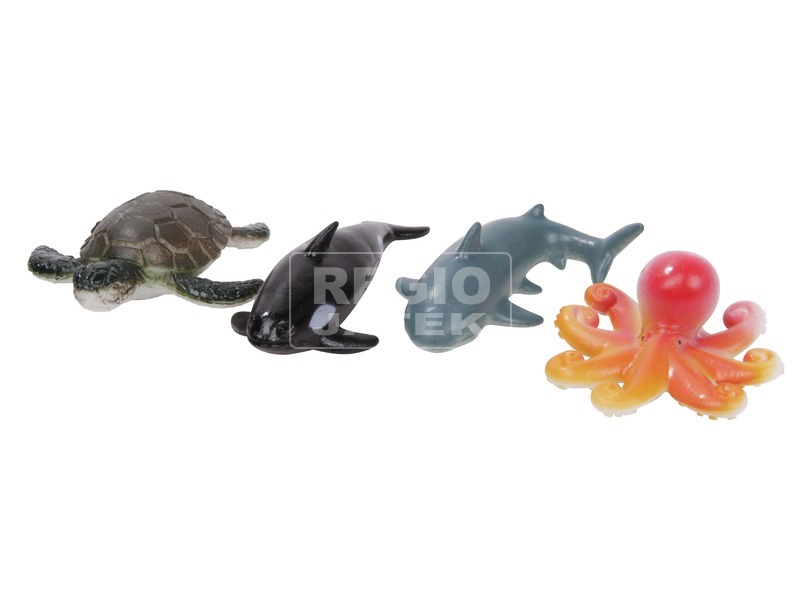 Csomagolás tartalma: teknősbéka, polip, delfin, cápa, fóka. Egy csomag tartalma 4 db tengeri állat, változó összeállításban.