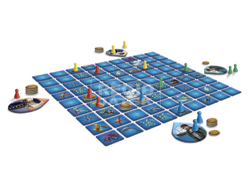 A legendás családi társasjáték, a Kincsvadászok visszatér. A világ különböző pontjairól érkezett a négy kapitány hajója, a kincs vélt rejtekhelye mellett találkoznak. Céljuk ugyanaz: megtalálni és megszerezni a réges-rég elsüllyedt hajók rakományát. Tapasztalt kincsvadászok, akiket nem riasztanak vissza a Neptunusz birodalmának veszélyei és csapdái. Céljuk, hogy felfedjék a tenger titkait, és riválisaik előtt kaparintsák meg a zsákmányt. Ki gyűjti össze a legtöbb kincset és tér vissza győztesként a felfedező útról? Ez a szerencsén és a taktikai képességeiden egyaránt múlik. A doboz tartalma: 81 db játéktábla kártya, 4 db hajó kártya, 41 db pénzérme, 16 matróz bábu (4 színből 4-4 db)