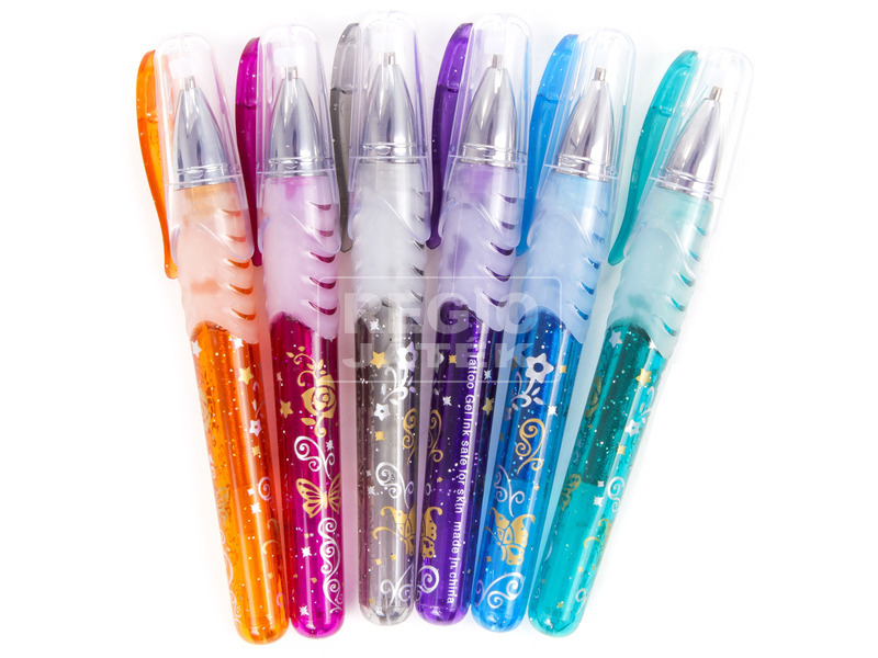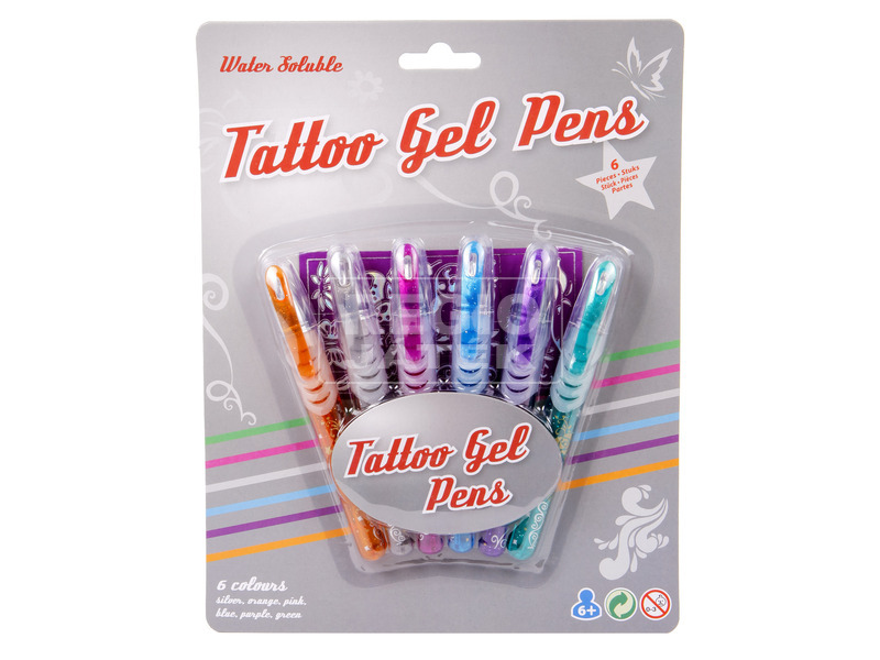 Rajzoljatok magatokra változatos mintákat! A Tetováló toll 6 darabos készlet különleges zselés tollakat rejt magában, amikkel a bőrre is lehet rajzolni. A tollak tintája vízben oldódó festékből készült, amikkel változatos ideiglenes tetoválásokat lehet rajzolni. A Tetováló toll 6 darabos készlettel készült tetoválások vízzel könnyedénn lemoshatók. A készlet 6 db tollat és egy sablont tartalmaz.