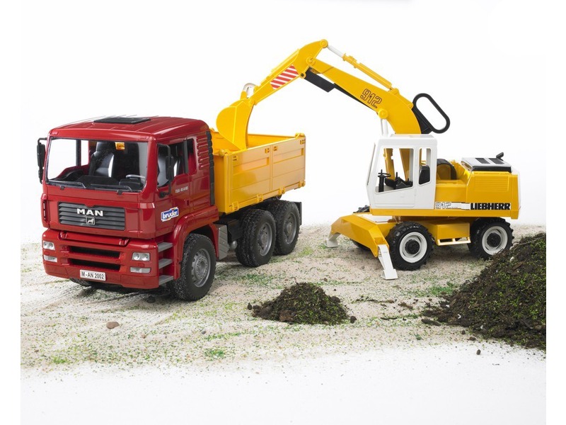 MAN TGA építőipari teherautó és Liebherr kotrógép