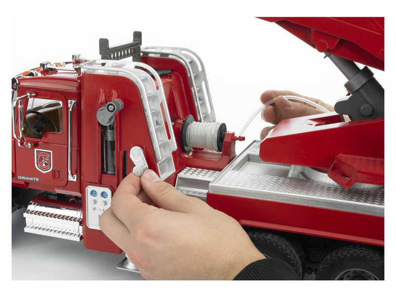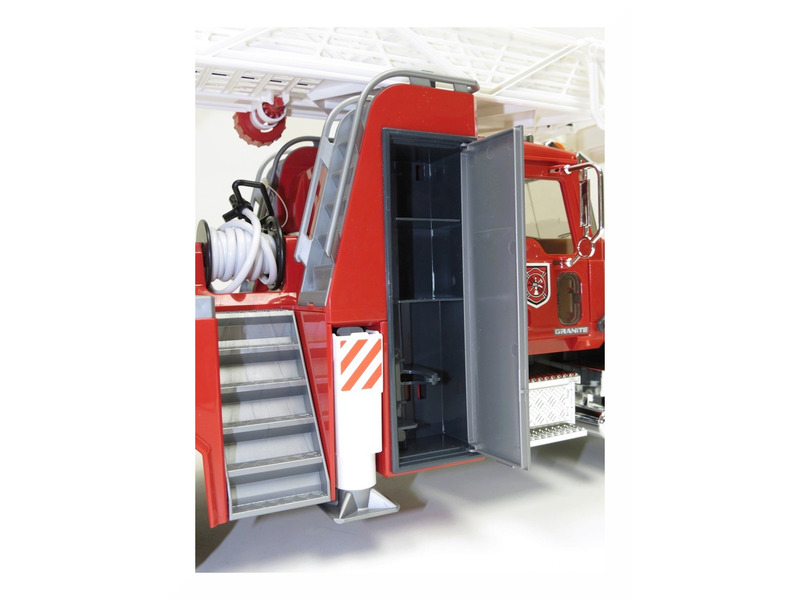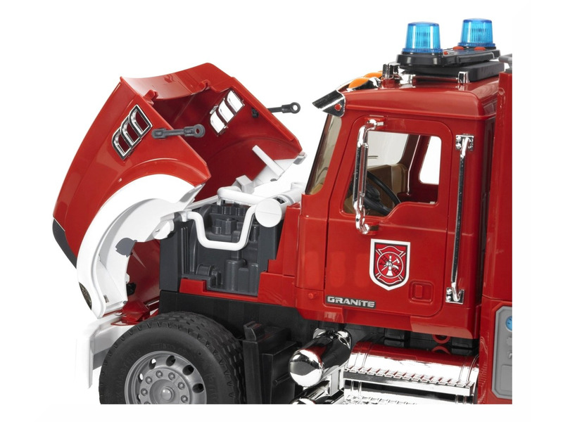 Készülj a valódi mentőakciókra a részletgazdag MACK Granite tűzoltóautóval! A 60 cm hosszú, 28 cm magas és 18 cm széles jármű minden részletében élethű: nyitható ajtókkal, tükrökkel, állítható és mozgatható létrával. A tartályába vizet is tölthetsz, amit egy kar segítségével pumpálhatsz, és a tömlőn keresztül valóban kifröccsen – így még izgalmasabb a játék. A sziréna L+S modullal működik, az elemeket (2 db AAA) a csomag tartalmazza, így azonnal indulhat a bevetés. Tedd próbára, és éld át a tűzoltók mindennapi kalandjait ezzel a különleges játékkal!