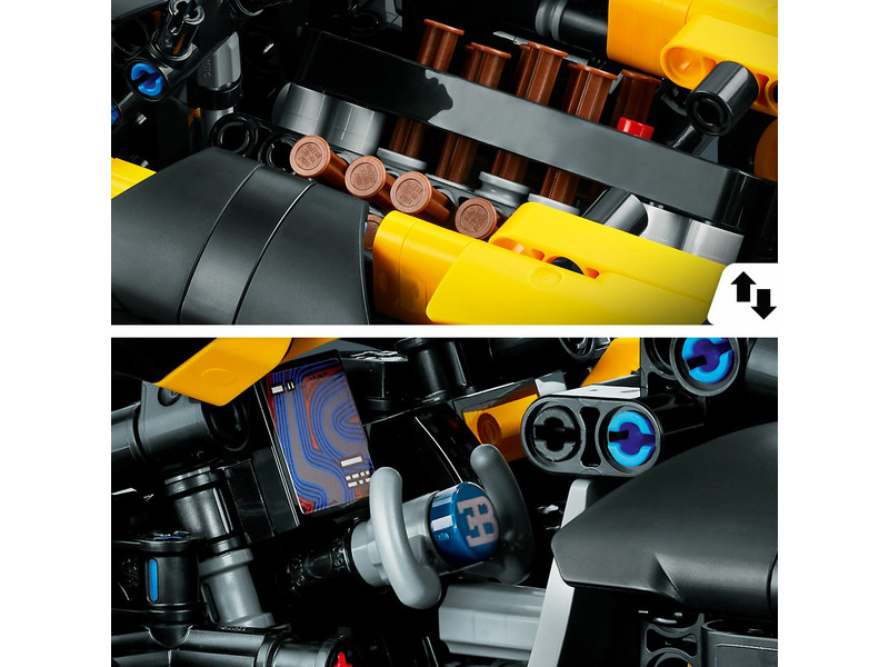 A fiatalok imádni fogják a kihívást jelentő projektet, miközben minden valósághű részletet megépítenek, többek között a működő W16 motort, kormányzást és az ollóajtókat. A sárga-fekete színösszeállításnak köszönhetően az autó bámulatos kinézete mindenki figyelmét magára vonzza. Az autó megépítése és felfedezése után a gyerekek büszkén kiállíthatják a gyűjthető modellt. Nagyszerű bevezetés a mérnöki tudományokba A LEGO Technic építőmodell-készletek valósághű mozgásokkal és szerkezetekkel vannak ellátva, amik megközelíthető és realisztikus módon vezetik be a fiatal LEGO építőket a műszaki tudományok világába. A LEGO Builder appal egy egyszerű és intuitív építési kaland vár rád és gyerekedre egyaránt! Az alkalmazásban felnagyíthatjátok és megforgathatjátok a modellek 3D-s változatát, készleteket menthettek el és nyomon követhetitek a haladásotokat.
