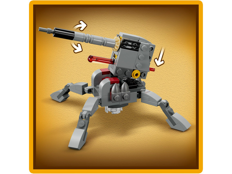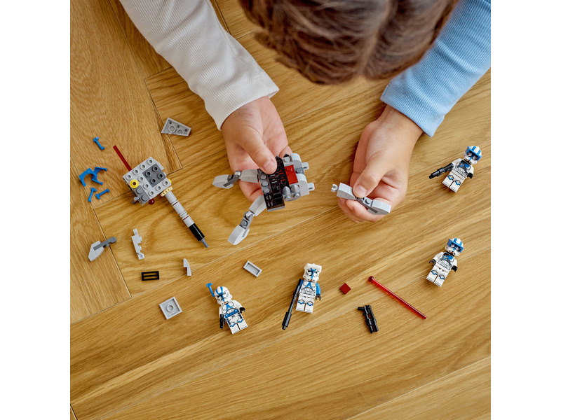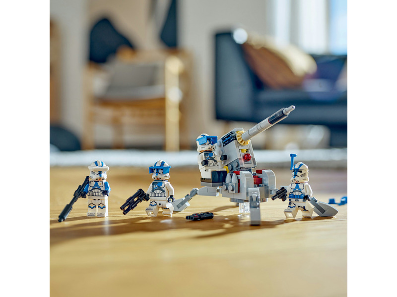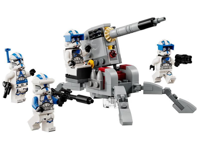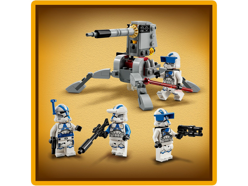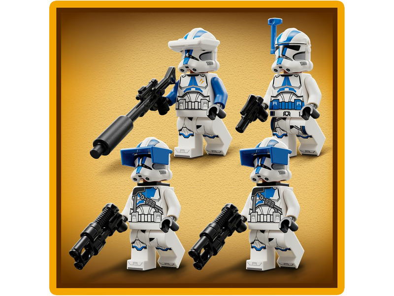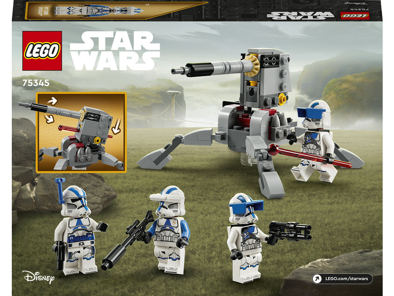 A fiatalok saját 501. klónkatonai egységet vezethetnek ezzel a 6 éves kortól ajánlott LEGO® Star Wars™ harci csomaggal (75345). A szett 4 új, 2023 januárjában megjelenő LEGO minifigurát tartalmaz – egy 501. tisztet, egy 501. klónspecialistát és 2 darab 501. nehéz gyalogsági katonát –, akik mindegyike harci eszközökkel van felszerelve az akciódús játékhoz. A készlet emellett egy megépíthető AV-7 jármű elleni ágyút is tartalmaz, ami egy rugós kilövővel és egy LEGO minifigurának kialakított hellyel van ellátva. Ez a népszerű építőjáték szuper ajándék gyerekeknek, amivel eljátszhatják a Star Wars: A klónok háborúja című sorozat akcióit, és a már meglévő LEGO Star Wars készleteiket is felturbózhatják vele.