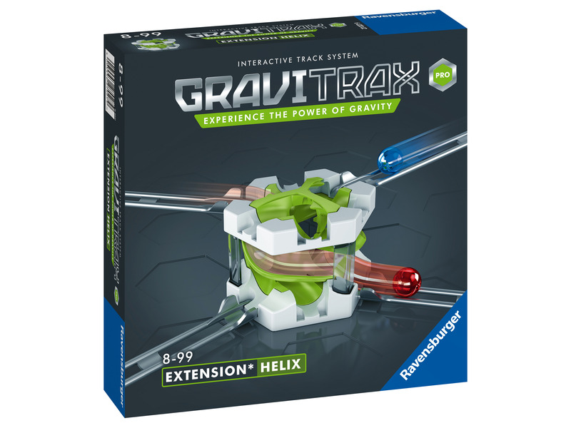 Ez az akciókő sok akciót hoz a GraviTrax márványfutás világába. Amikor egy márvány a spirálba gördül, irányváltás nélkül lejjebb kerül. Egyszerre legfeljebb 6 golyó kerülhet a hélixbe. Kezdőkészlettel (nem tartozék) kombinálva izgalmas pályák építhetők anélkül, hogy a labdák egymás útjába kerülnének. 1 spirál Csak kezdőkészlettel játszható (nem tartozék) Izgalmas márványfutási élmény Gyerekeknek 8 éves kortól