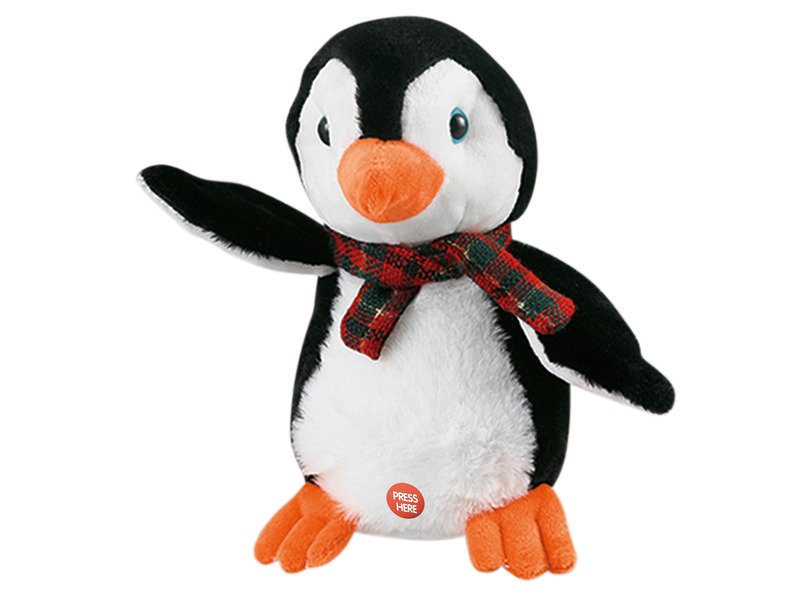 A plüss mérete kb 23 cm. A játék 3 db AAA elemmel működik.