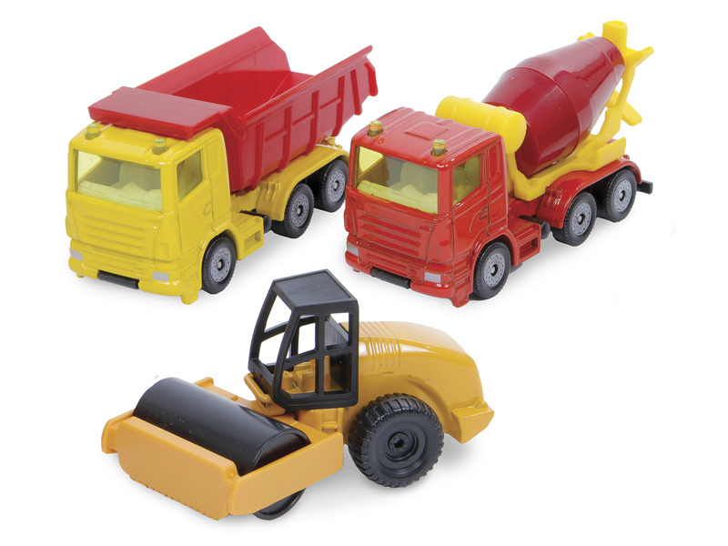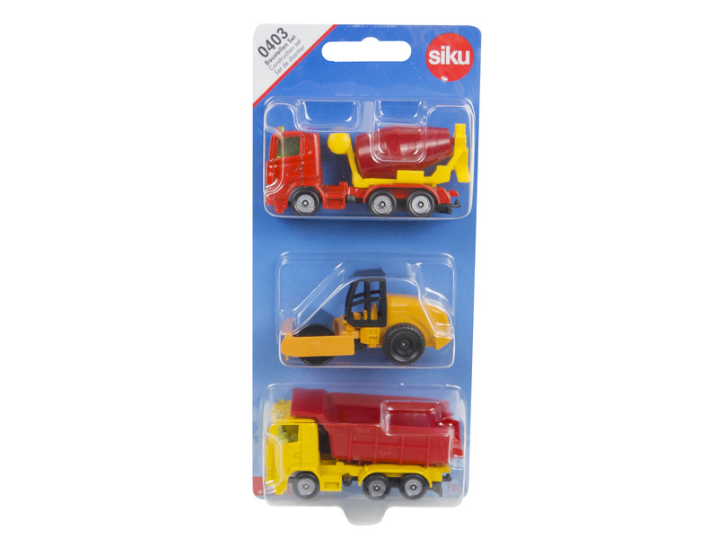 Építési készlet, amely a következőkből áll: Scania R380 (CR16, nappali fülke, közepes hosszúságú, alacsony előretolható vezérlőfülke, 2004-2009 modell) betonkeverő (vö. 0813, 3. változat) + HAMM 3625 HT tömörítő vibráló sima dobbal és HAMMTRONIC (ROPS fülketípus, motor : Deutz BF6M1013EC hathengeres dízel 236,7 LE, tengelytáv 3230 mm, hossz 6355 mm, modell 2000-2007) (úthenger) (vö. 0895) + Scania R380 (CR16, Dayngth, CR16, Dayngth alacsony fülke, 2004-2009-es modell) Billenő karosszériás teherautó (vö. 1075, 2. változat), betonkeverő: világos karmazsin/forgalomsárga, belül tiszta fehér, kormánykerék integrált, 2 sárga lámpával a vezetőfülkén, keverő alap forgalom sárga, dob rubinvörös, Bpr. címmel, az alvázra szürkével nyomtatott tételszámmal, sárga üvegezéssel, C36, kb. 1:89, Tömörítő: nárcisz sárga, fekete vezetőfülke üvegezés nélkül, ülés nárcisz sárga, kormány nárcisz sárga, vibráció sima dobfekete fekete belső résszel.