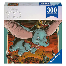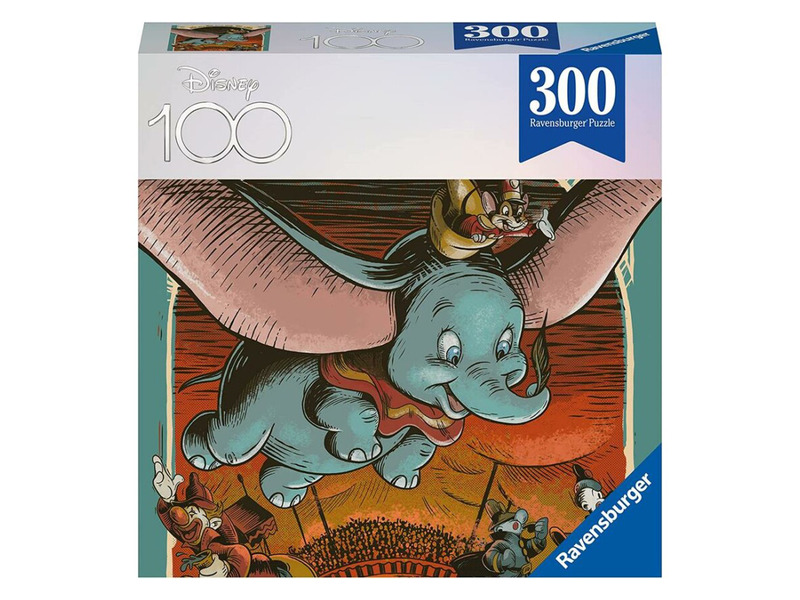 A Ravensburger 300 db-os puzzle - Disney 100 - Dumbo című képen a bájos, óriás fülű kis elefánt cirkuszi jelenete elevenedik meg.