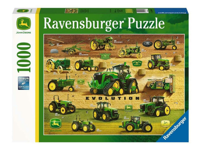 A Ravensburger kiváló minőségű termékei mögött több évtizedes puzzle-gyártási tapasztalat áll, mely garantálja a felejthetetlen puzzle-élményt. A kiváló termékminőség mellett a 2D-s és 3D-s kirakók rendkívül széles választékát nyújtja. A minőség iránti szenvedély, a részletekre való odafigyelés és a motívumok hatalmas választéka teszi a Ravensburger kirakókat olyan egyedivé. Kínálatában kezdőktől a profikig mindenki megtalálja a számára tökéletes puzzle-t! A Ravensburger 1000 db-os - John Deere Evolution című puzzle a traktorimádó gyermekek és felnőttek kedvenc kirakója. A jellegzetes zöld színű mezőgazdasági és munkagépek múltját és jelenét láthatjuk a kirakott képen. Kirakott kép mérete: 70 cm x 50 cm.
