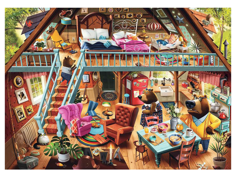 Goldilocks mélyen alszik az emeleten Robert Southey híres 19. századi tündérmeséjének ebben a színes újragondolásában. A földszinten Mami és Medvepapa nem érti, hogyan és miért van ekkora rendetlenség a reggeliző asztalukon, mivel két tál zabkása már megkezdett, egyet pedig teljesen megevett! Baby Bear felmászik a lépcsőn, és elképed, amikor látja, hogy valaki alszik az ágyában! Dean McAdam gazdagon illusztrált dizájnja tökéletesen megteremti a jelenetet a hangulatos kis házikóban, és tele van gyönyörűen színes részletekkel, amelyeket felfedezhet és élvezhet, miközben megépíti ezt a mesés puzzle-t.