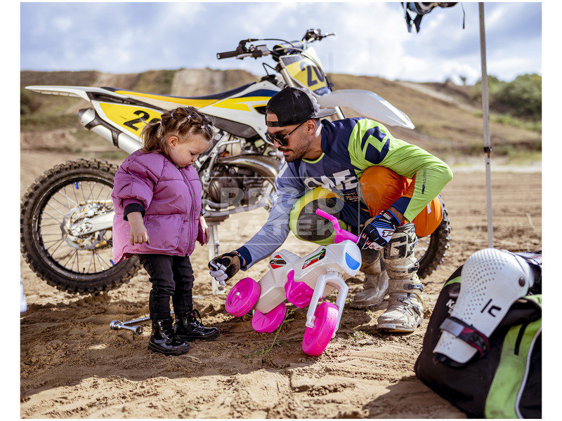 Műanyag, lábbal hajtható kicsi Enduro motor, 54 cm-es méretben. A kicsi Enduro lábbal hajtós kismotor erősíti a picik lábát, ráadásul igazi felnőttnek érezhetik magukat, ahogy száguldoznak fel-alá! A motor kormánya forgatható, a műanyag szerkezet könnyű, ezért nem nehéz cipelni, amikor a gyerek a szabadban játszik. A kicsi Enduro lábbal hajtós kismotor hossza: 54 cm, ülés magassága: 26 cm, kormány magassága: 42 cm. A játékok külön kaphatóak.