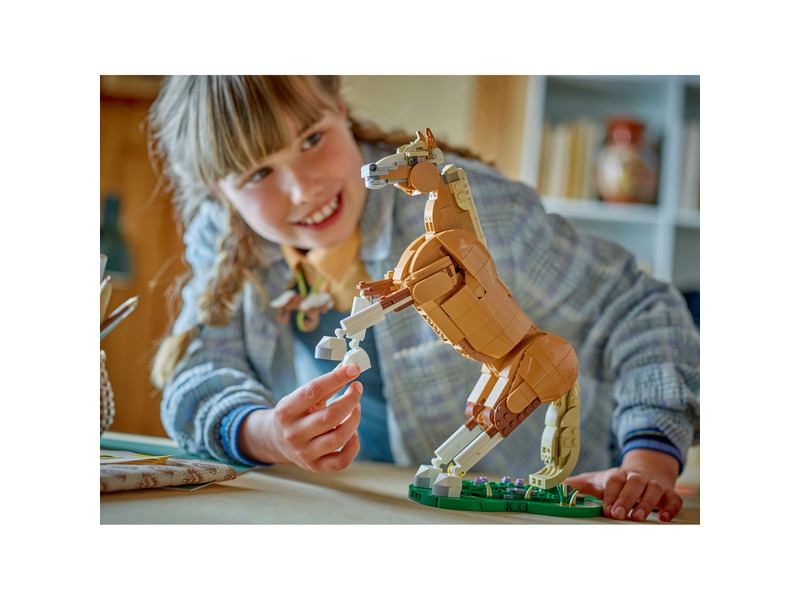 A gyerekekre 3 különböző építési lehetőség vár ugyanazon kockákfelhasználásával: egy játék LEGO® ló, egy beállítható játék medve, kicsi vízesésépítménnyel és egy beállítható és elegáns játék szarvas. Az átalakítható játékszett mindhárom figurája kreatív és szórakoztató ajándék lesz a gyerekek számára.