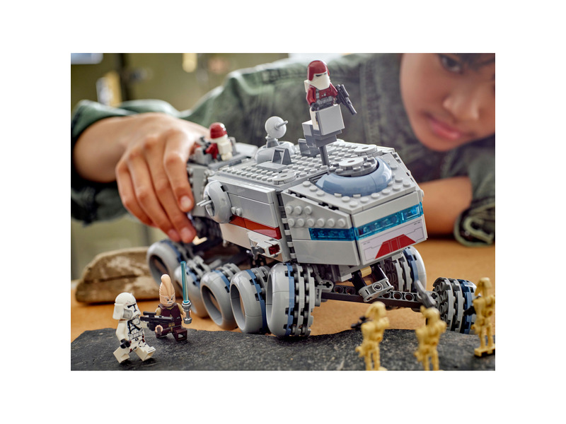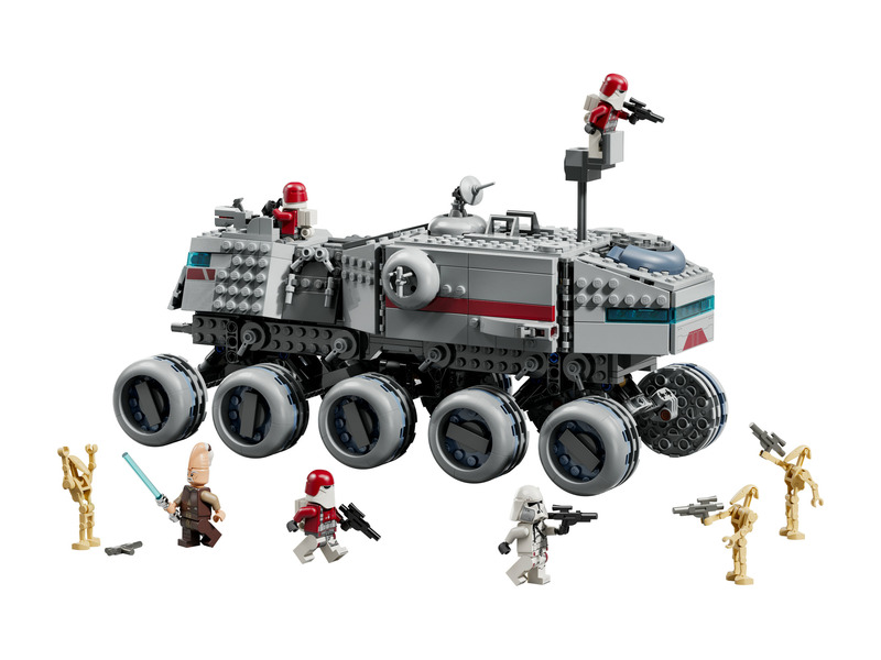 A készlet 5 LEGO Star Wars minifigurát is tartalmaz: Ki-Adi-Mundi egy fénykarddal, Bacara parancsnok és 3 Nova-klónkatona, mindegyikük sugárpisztollyal. A szett része még 3 LEGO harcidroid-figura is, akik szintén sugárpisztollyal vannak felfegyverezve. Helyezd a LEGO minifigurákat az első és hátsó vezetőfülkékbe, a szállítótérbe (ahol ülések és fegyverállványok vannak), a magas megfigyelőállomásra vagy a korongvetőkkel felszerelt lövegtoronyba!