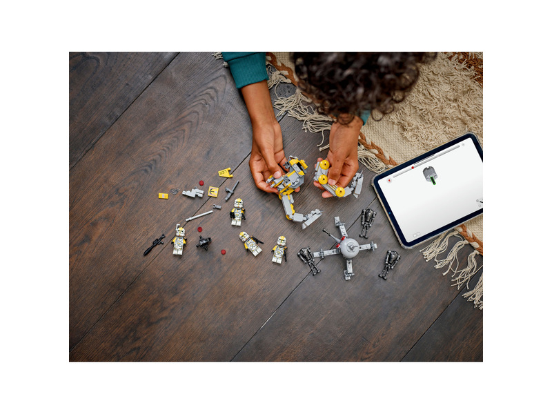 Egy szuper Star Wars ajándékötlet 7 éves vagy nagyobb fiúknak, lányoknak, ifjú rajongóknak és a LEGO építés szerelmeseinek, hiszen a szett megépítése nagyon szórakoztató, az akciókkal teli játék pedig hosszú órákon át tart majd. Keresd a digitális útmutatót a LEGO Builder alkalmazásban, ahol nagyító, forgató és megjelenítő eszközök teszik még izgalmasabbá az építési élményt a gyerekek számára. Ez a szett 258 elemből áll.