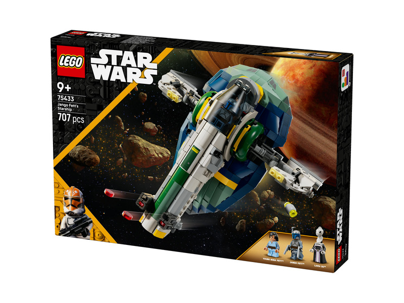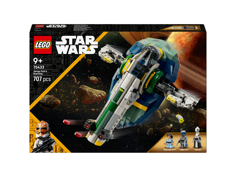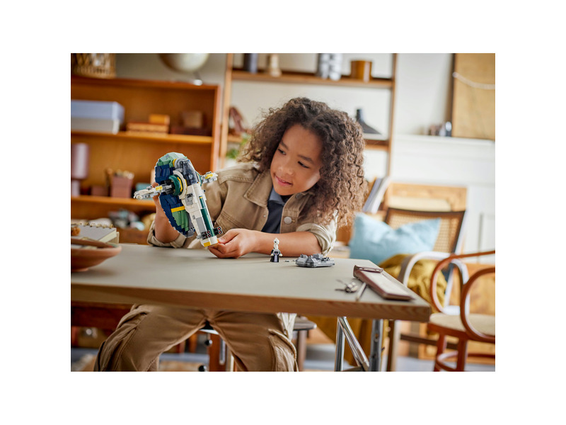 Ez a szett kiváló Star Wars™ ajándék gyerekeknek, hiszen tartalmaz 3 minifigurát is: Jango Fett 2 sugárvető pisztollyal és hátrakétával, a fiatal Boba Fett és Lama Su. A szett része egy szállítókocsi is, amellyel a játék során mozgathatod a csillaghajót, vagy amit állványként is használhatsz, ha épp fantasydekorációt készítenél két játék között.